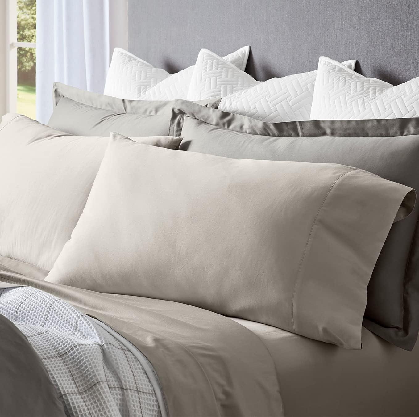 INCLUDED: Featuring a flat sheet, 2 pillowcases with a 6” hemline, and a fitted sheet with a 17” deep pocket to fit any mattress. Available in Full, Twin, Twin XL, Queen, King, Split King, and California King sizes